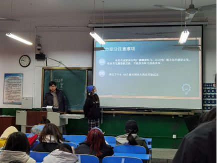 2019级各班主题班会的开展均展现出积极乐观的态度,展现了良好的精神风貌。如有的班级以“迎四级考试,促学风建设”为主题,强调了诚信考试的重要性;有的班级以“加强考风建设,树立优良学风”为主题,商讨加强学风养成的督导措施;有的班级以“自律自强,知行合一”为主题,讨论了如何养成良好的学风以及学风养成中需要克服的问题……