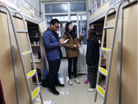 学生宿舍是学生学习、生活的重要场所,是学生安全教育和管理工作的重要组成部分。按照学校统一安排,10月7日-9日,老虎机赌场 党委副书记曲媛媛,团委书记张乾坤,辅导员杨景添、肖黎、刘怀峰、高原对老虎机赌场 全部学生宿舍进行了安全隐患大排查。
