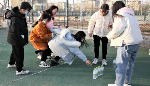 众志成城齐努力,四人小组创佳绩。本次活动共分为两个赛程。在前半段赛程中,同组四名成员分为两小组,每小组依次完成背对背夹球跑步,统计两支分组完成时间作为该组第一环节总用时。在后半段赛程中,同小组成员需在其他队友帮助下拿到水瓶并回答瓶下题目,组内四名成员全部完成后视为该组完成比赛第二环节。两个环节累计总用时最短组获胜。在比赛过程中,各组队员齐心协力,默契配合,共同完成比赛挑战。
