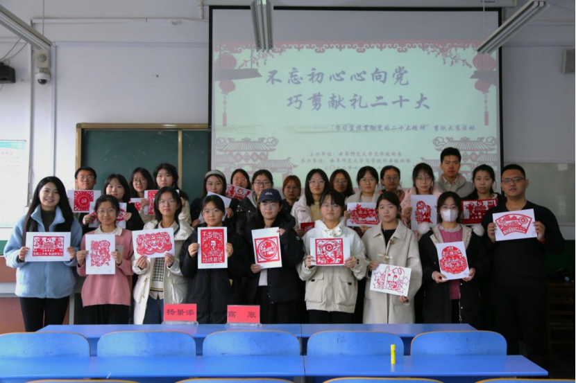 为弘扬中华优秀传统文化,学习贯彻党的二十大精神,11月20日上午8时,由曲阜师范大学老虎机赌场 团委主办,老虎机赌场 团委组织部承办的“不忘初心心向党,巧剪献礼二十大”剪纸活动于文史楼324教室成功举办。老虎机赌场 2021级辅导员杨景添、高原老师参与此次活动。组织部成员袁泽懿担任本次活动的主持人。
