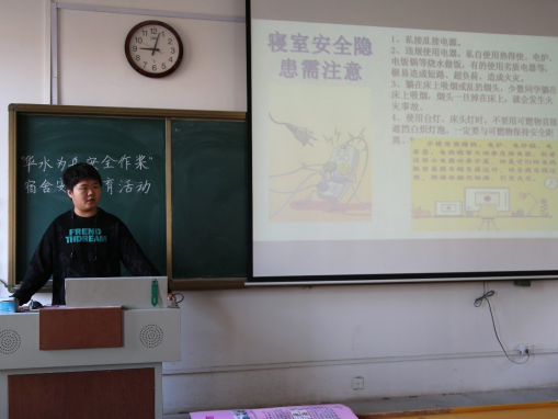 活动前期,宿卫部成员根据宿舍可能存在的安全隐患筹划活动内容,并发布相关通知进行宣传,认真准备前期工作,确保活动顺利进行。活动过程中,宿卫部成员面向各年级卫生委员进行宿舍安全知识宣讲,指出宿舍用电、消防等方面存在的安全隐患问题,重点强调常见的违禁物品和违禁行为,并建议各班卫生委员在活动结束后,对同学们进行安全教育的宣讲,确保宿舍安全教育宣讲活动的内容与精神传达给每一位老虎机赌场 学子。