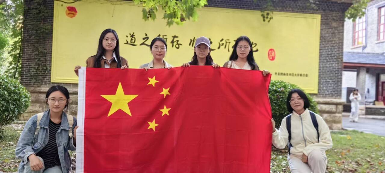 在实践行动中,各支部学子同样以多种形式展现青年担当。2024级1班团支部开展“三行寄心语”书信征集活动,同学们以简洁真挚的文字书写对祖国的深情告白;2024级4班团支部组织“云打卡红色足迹”,借助线上资源探访革命遗址与纪念馆,并通过心得分享深化学习感悟;2024级6班团支部走进红色教育基地,通过观摩历史文物、图文及影像资料,在沉浸式学习中强化历史认同;2024级8班、9班团支部则积极开展“与国旗同框”活动,以影像为媒表达对祖国的热爱与祝福,展现新时代青年的精神风貌。