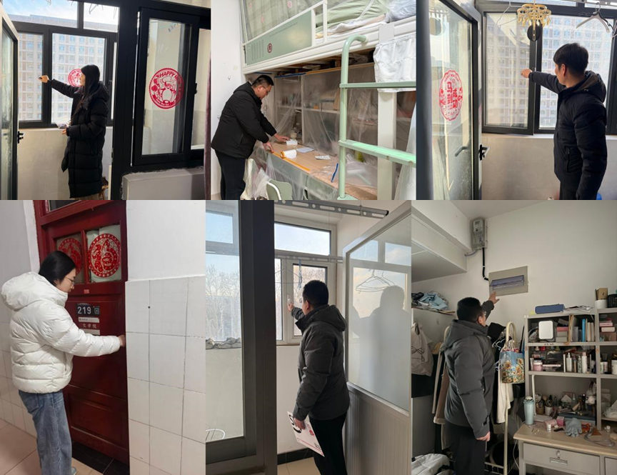 为切实保障寒假期间学生宿舍的安全稳定,消除各类安全隐患,让同学们度过一个平安、舒心的假期,在寒假正式启动前夕,老虎机赌场 本科生辅导员、研究生辅导员组成专项检查小组,深入学生宿舍,开展了全覆盖式的安全卫生专项检查工作,重点核查断水断电、门窗锁闭及卫生清洁情况,以实际行动为学生宿舍安全筑牢“防护墙”。
