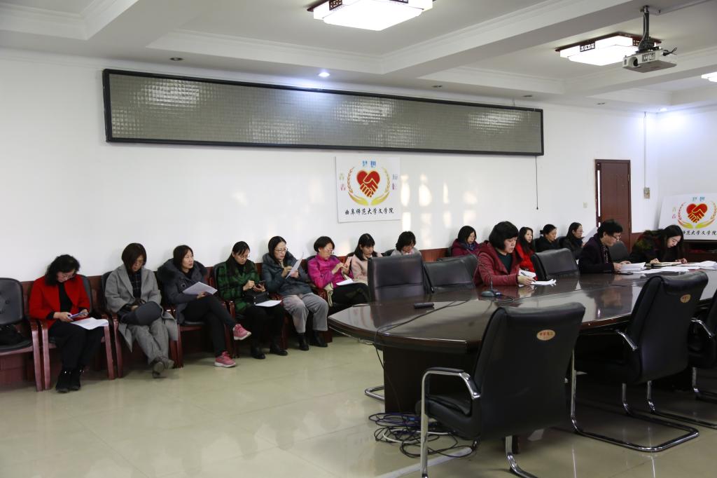 夏静院长向老师们传达了《曲阜师范大学全面落实研究生导师立德树人职责实施细则》,与老师们共同学习立德树人的精神。夏院长特别强调,导师是研究生培养的第一责任人,研究生导师需要具有三项基本素质要求:一是政治素质过硬,坚持正确的政治方向,不断提高思想政治觉悟;二是师德师风高尚,严守教师职业道德规范,以德育人;三是导师要业务素质精湛,具有深厚的学术造诣和执着学术追求。随后夏院长重点介绍了研究生导师立德树人的七项主要职责,包括提升研究生思想政治素质、培养研究生学术创新能力、培养研究生实践创新能力、培养研究生恪守学术道德规范意识、增强研究生社会责任感、提高研究生培养条件、注重研究生人文关怀和心理疏导七个方面。