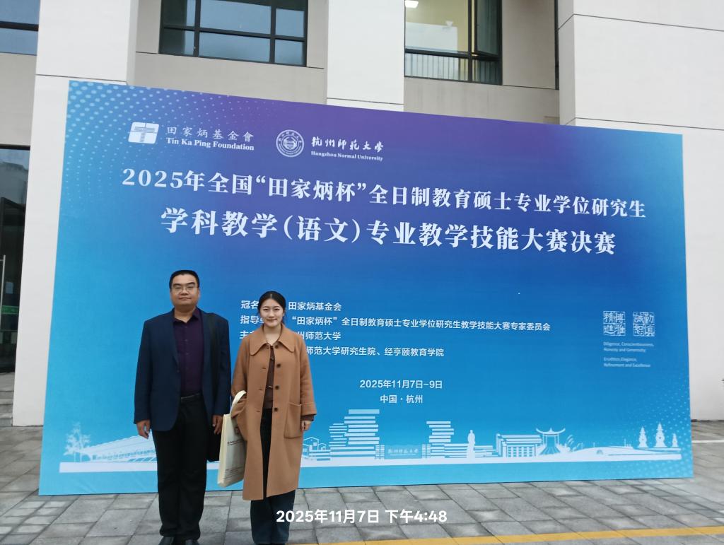 11月7日至9日,2025年全国“田家炳杯”全日制教育硕士学科教学(语文)专业教学技能大赛决赛在杭州师范大学隆重举行。老虎机赌场 2024级学科教学(语文)研究生李晓曼在指导教师朱献贞、周春波带队下,参加了本次竞赛,并荣获大赛三等奖。