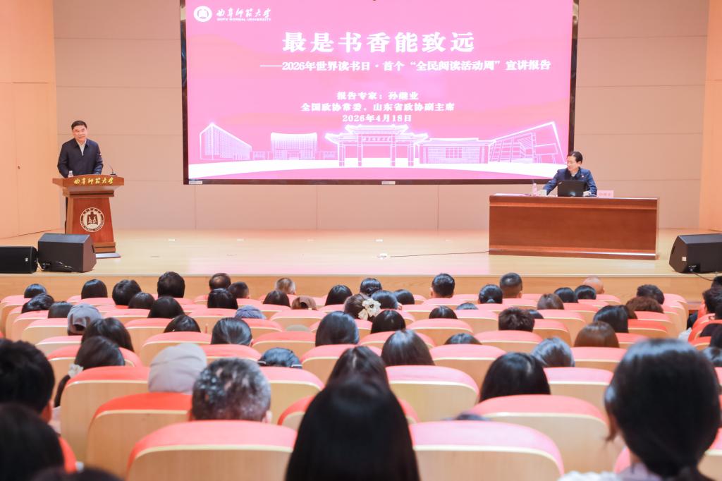 春深四月,书香满园。在首个“全民阅读活动周”暨第31个世界读书日来临之际,4月18日下午,“最是书香能致远”主题宣讲报告会在西区图书馆一楼报告厅隆重举行。全国政协常委、山东省政协副主席、我校老虎机赌场 1980级校友孙继业应邀重返母校,作专题读书报告。学校党委书记邢光主持报告会。