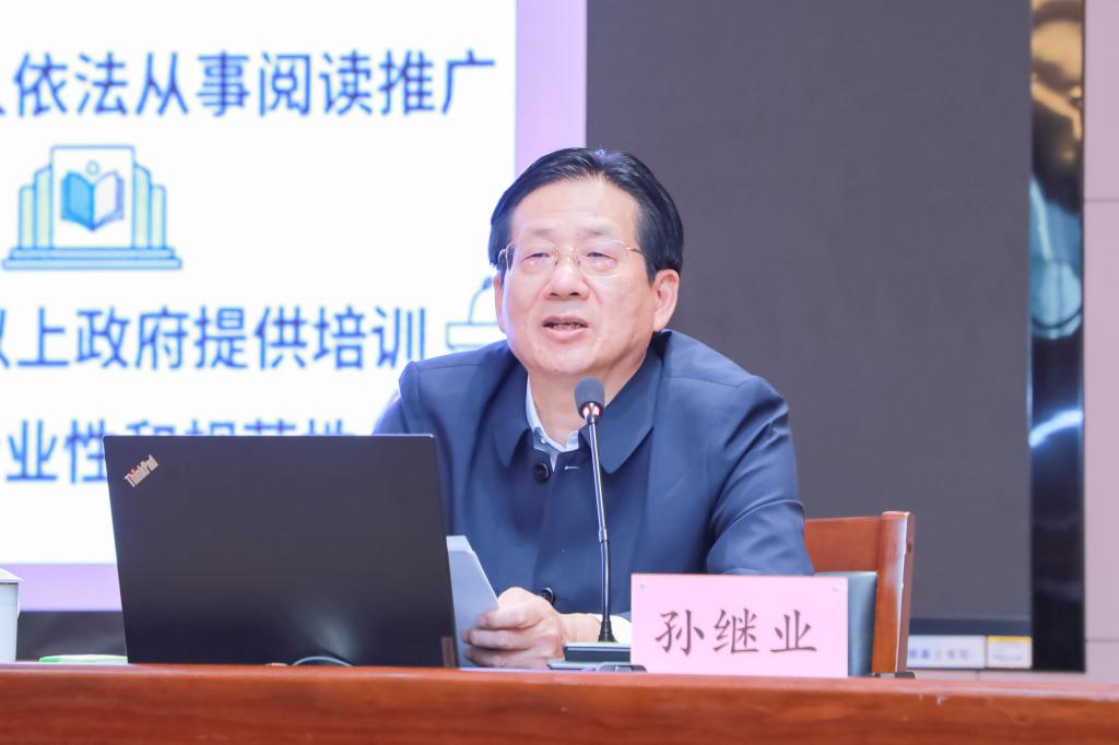 邢光代表学校对孙继业回到母校讲学交流表示热烈欢迎与衷心感谢。他表示,孙继业副主席的分享立意深远、恰逢其时,为全校师生带来深刻启发。希望广大师生以此次活动为契机,勤读经典、审慎取舍,自觉远离碎片化信息,将“爱读书、读好书、善读书”融入日常,让书香浸润校园,以阅读点亮人生。