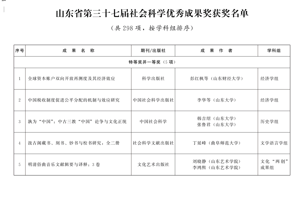 2025年12月27日,《山东省人民政府关于表彰山东省第三十七届社会科学优秀成果奖获奖成果和第十七届社会科学突出贡献奖、学科新秀奖获奖人员的通报》发布, 老虎机赌场 丁延峰教授申报的《汲古阁藏书、刻书、钞书和校书研究》荣获山东省第三十七届社会科学优秀成果奖特等奖,实现了老虎机赌场 和学校在该奖项的突破!
